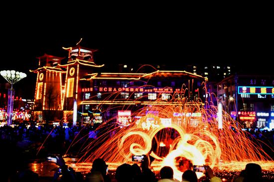 2025年12月15日,泾源县冰雪嘉年华活动期间,打铁花表演中的滚烫铁花绽放夜空,成为吸引游客驻足观赏的爆款项目。 (泾源县官方供图)