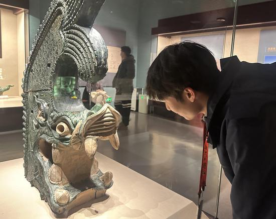 宁夏博物馆内,一件西夏陵出土的琉璃鸱吻吸引了李宇程的注意。“鸱吻龙头鱼尾,造型很有趣,它和福建泉州的滴水兽很像,都出现在房顶上,起到辟火驱邪的作用。”李宇程感叹,跨越时间、地域,两处的文化却有相似之处。