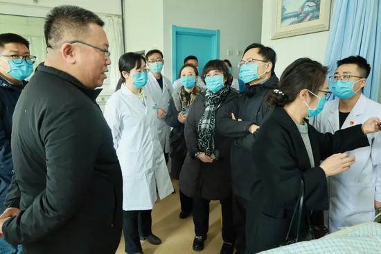 叶琳琳(左四)到中宁县中医医院慰问下基层职工。
