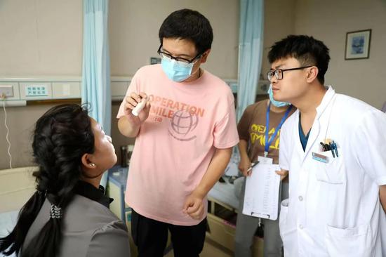 “微笑行动”专家医疗团队和自治区人民医院口腔科医务人员正细致地查房,一边认真查看唇腭裂患者的恢复情况,一边耐心向家属叮嘱复查的时间和康复期注意事项。