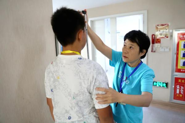 在筛查过程中,志愿者为患儿测量身高。
