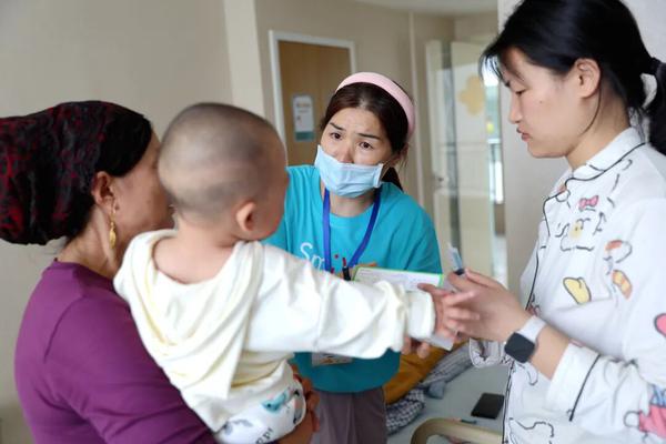 志愿者与刚做完手术的患儿互动。